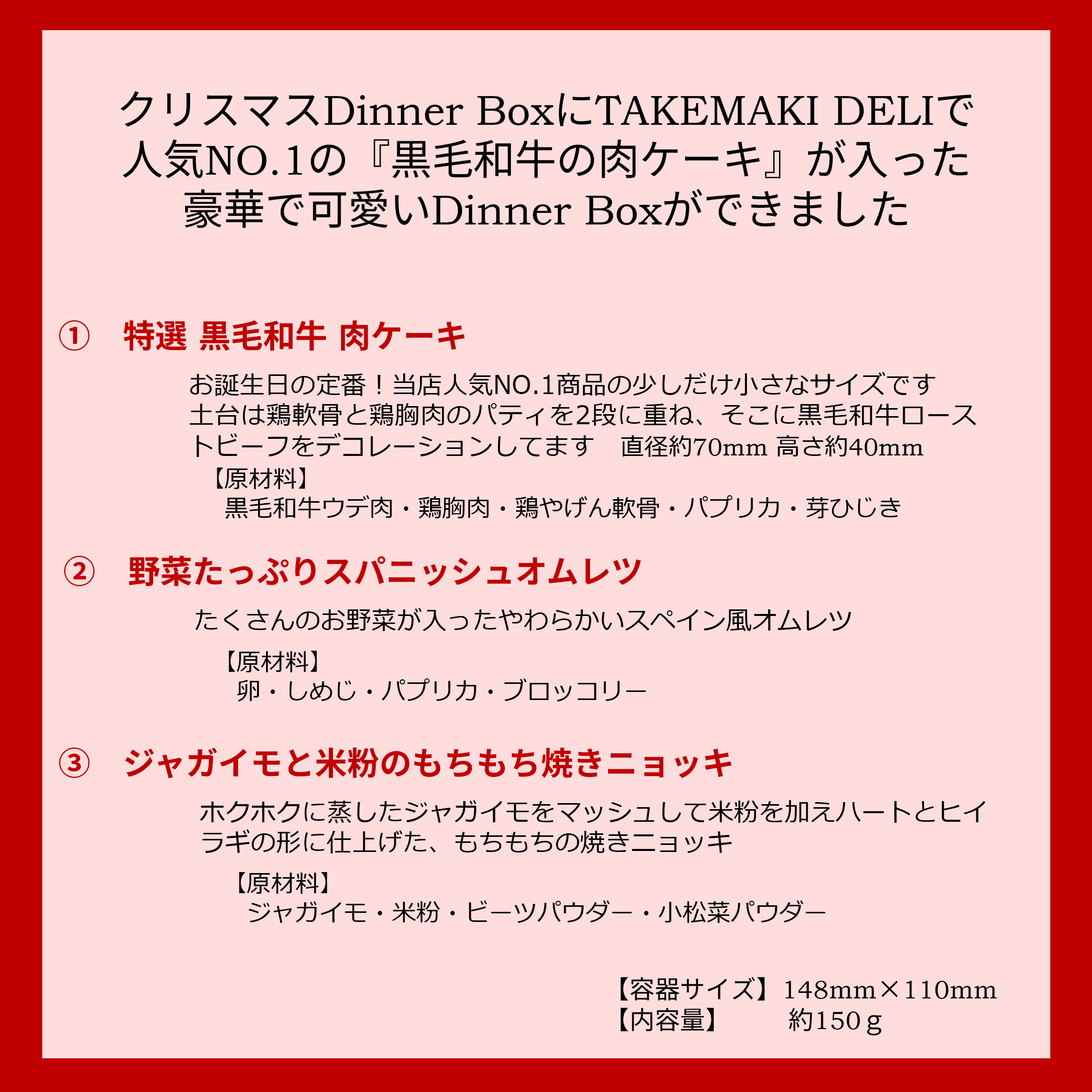クリスマスのディナーにTAKEMAKI DELIで人気NO.1の『黒毛和牛の肉ケーキ』が入った